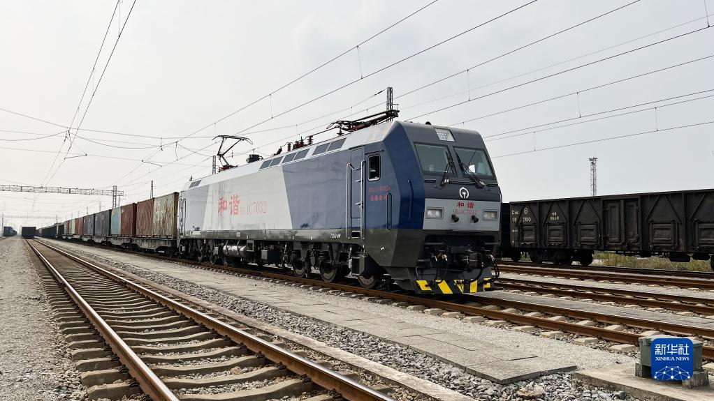 2月25日,在廣西欽州港東站,滿(mǎn)載貨物的鐵海聯(lián)運班列鳴笛出發(fā)。