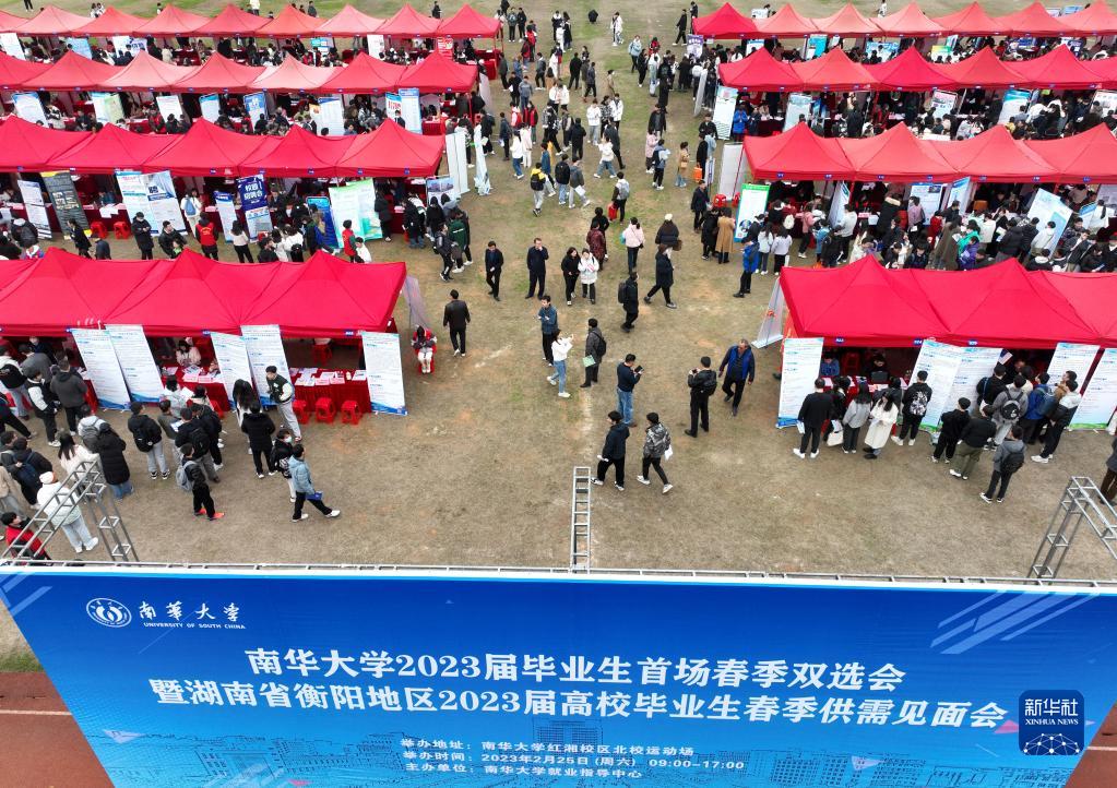 當日,南華大學(xué)2023屆畢業(yè)生首場(chǎng)春季雙選會(huì )暨湖南省衡陽(yáng)地區2023屆高校畢業(yè)生春季供需見(jiàn)面會(huì )在南華大學(xué)舉行。本次雙選會(huì )共邀請來(lái)自全國各地432家單位參會(huì ),提供就業(yè)崗位17576個(gè),吸引了南華大學(xué)及衡陽(yáng)地區高校2023屆畢業(yè)生參會(huì )洽談就業(yè)。