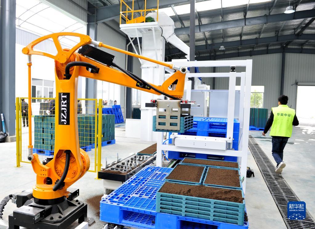 2月24日,在涇口鄉工廠(chǎng)化智能育秧中心,自動(dòng)化裝備在流水線(xiàn)上進(jìn)行早稻育秧工作。