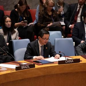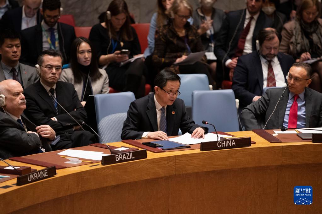 2月24日,在位于紐約的聯(lián)合國總部,中國常駐聯(lián)合國代表團臨時(shí)代辦戴兵在安理會(huì )烏克蘭問(wèn)題公開(kāi)會(huì )上發(fā)言,闡述中方關(guān)于政治解決烏克蘭危機的立場(chǎng)。