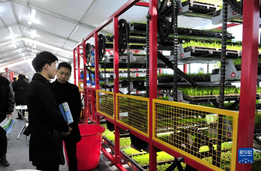 2月24日,觀(guān)展者在參觀(guān)循環(huán)運動(dòng)式育苗設備。