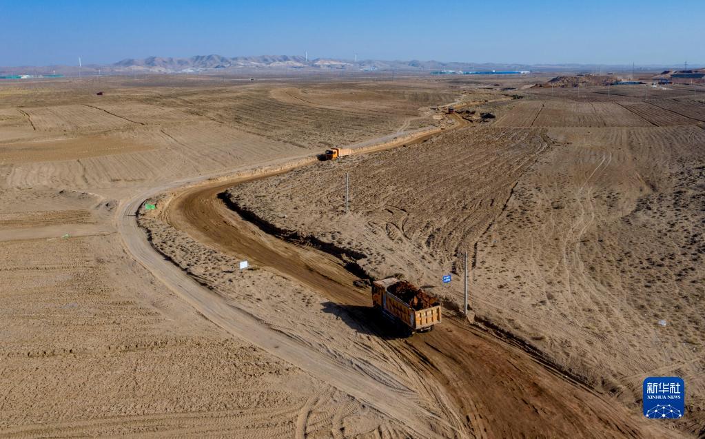 這是2月24日拍攝的寧夏同心縣韋州鎮現代高效節水農業(yè)項目施工現場(chǎng)(無(wú)人機照片)。
