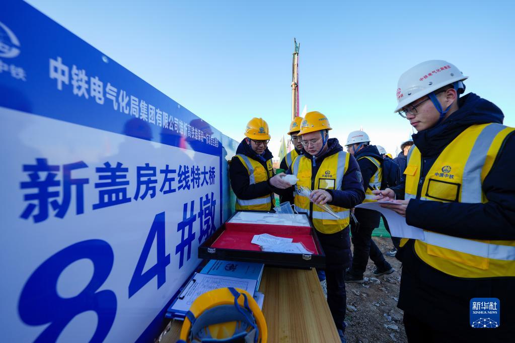 2月25日,中鐵電氣化局的施工人員在雄忻高鐵新蓋房特大橋建設現場(chǎng)準備對鉆孔泥漿進(jìn)行檢測。