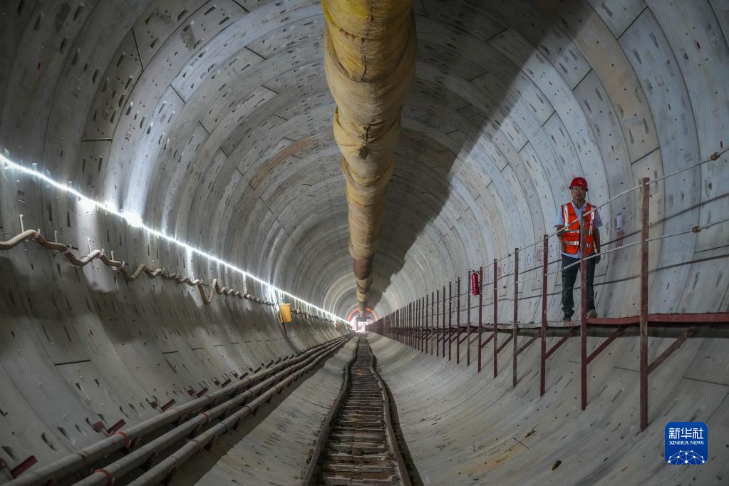 2月25日,一名技術(shù)員行走在貫通的東莞地鐵1號線(xiàn)水濂山站右線(xiàn)盾構隧道內。