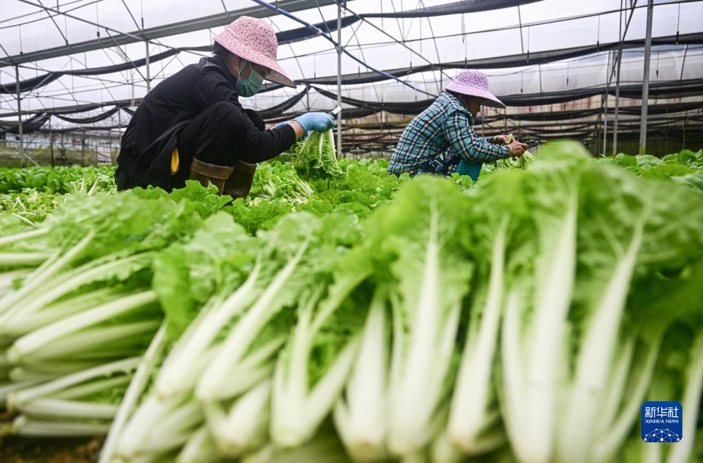 農戶(hù)在海南省屯昌縣坡心鎮高朗洋蔬菜基地采收青菜(2月14日攝)。