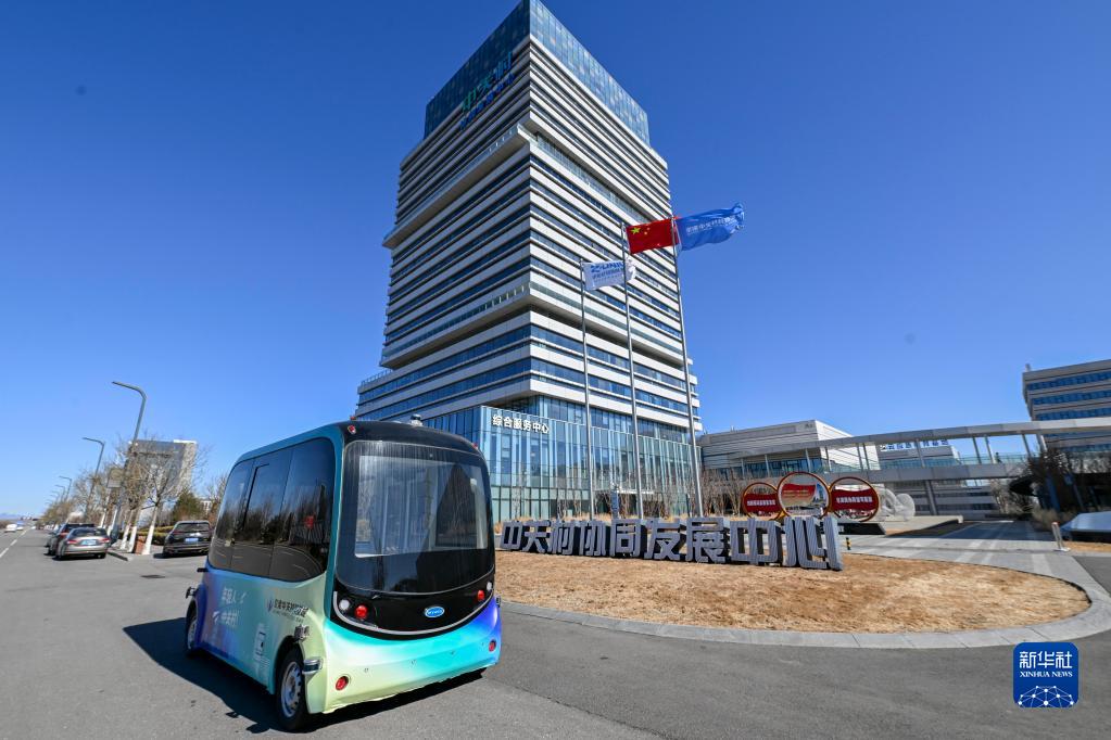 一輛無(wú)人駕駛汽車(chē)??吭诰┙蛑嘘P(guān)村科技城協(xié)同發(fā)展中心前(2月20日攝)。