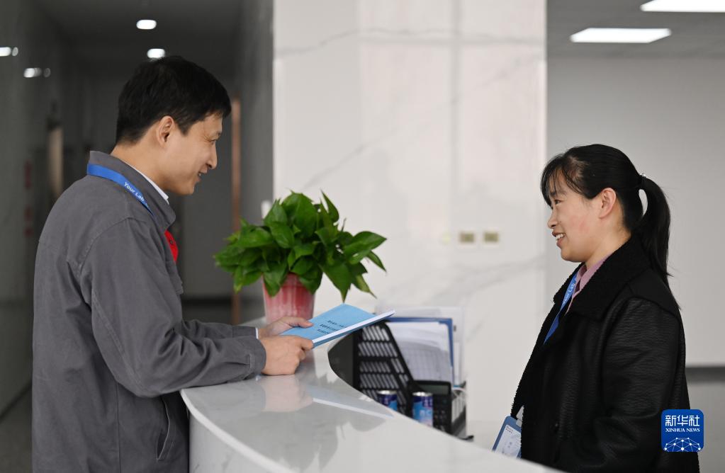 在萊伯泰科(天津)科技有限公司,劉學(xué)(左)和于麗新在交流(2月23日攝)。今年37歲的劉學(xué)曾在北京工作多年。2019年,他和妻子于麗新一起被派到天津寶坻京津中關(guān)村科技城,參與分公司的設立?,F在他們一家人已經(jīng)在天津落戶(hù)。于麗新希望家人健康平安、孩子學(xué)業(yè)有成。劉學(xué)說(shuō),妻子的愿望就是他的愿望。