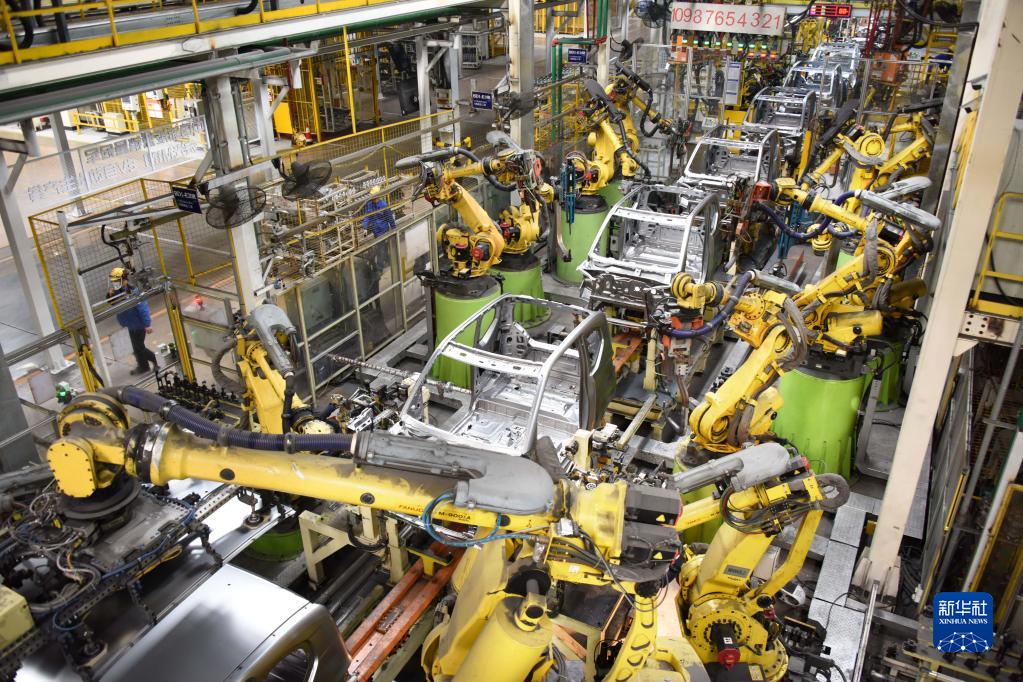 山東自貿試驗區青島片區一汽車(chē)制造企業(yè)的自動(dòng)化流水線(xiàn)在生產(chǎn)汽車(chē)(2月23日攝)。