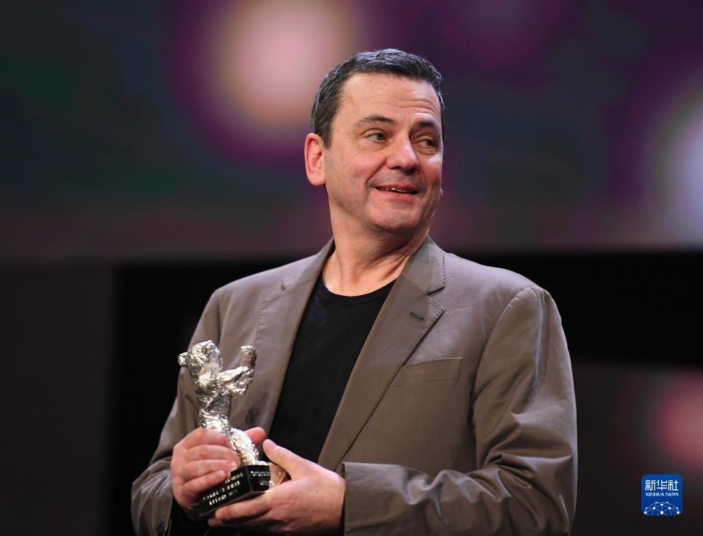 2月25日,在德國柏林,德國影片《紅色天空》導演克里斯蒂安·佩措爾德在頒獎儀式上發(fā)言?!都t色天空》獲得評審團大獎銀熊獎。
