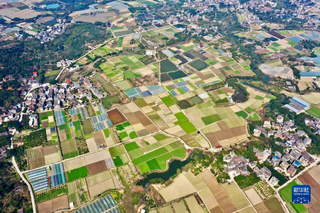 春耕時(shí)節,在福建省福州市鄉村山嶺間,一塊塊形狀各異、五彩斑斕的田地猶如大地上的拼圖,呈現別樣的春耕畫(huà)卷。