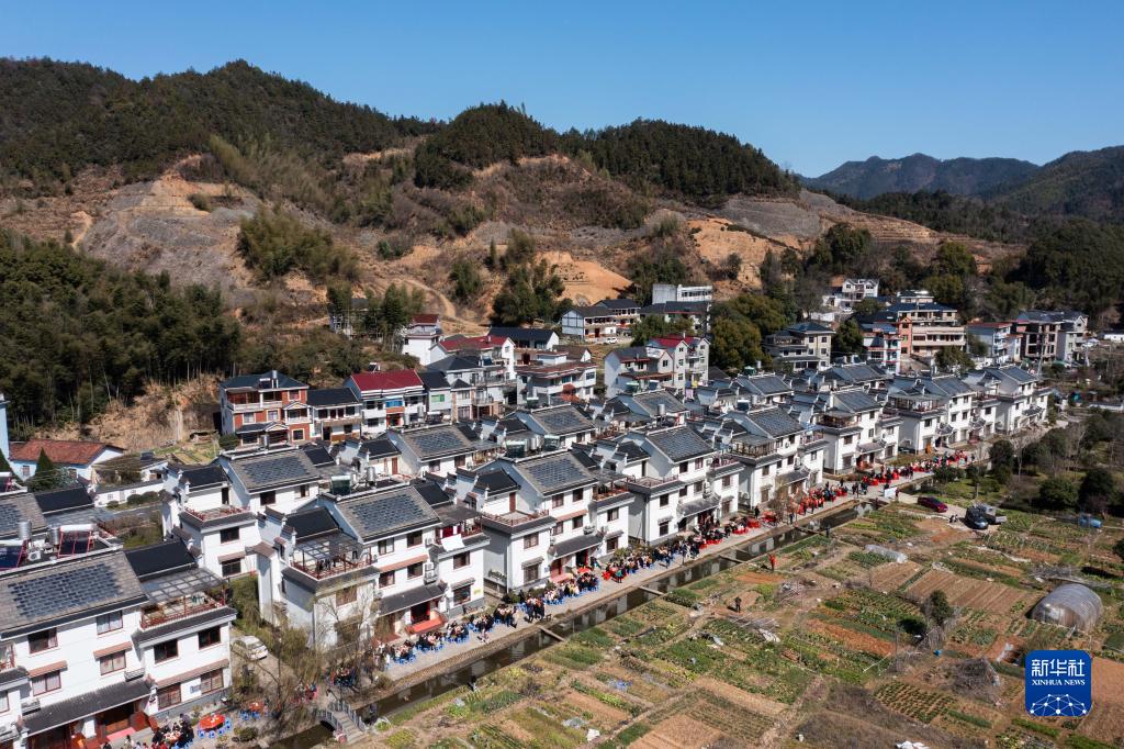 2月26日空中俯瞰蓮花鎮戴家新村的百家宴(無(wú)人機照片)。