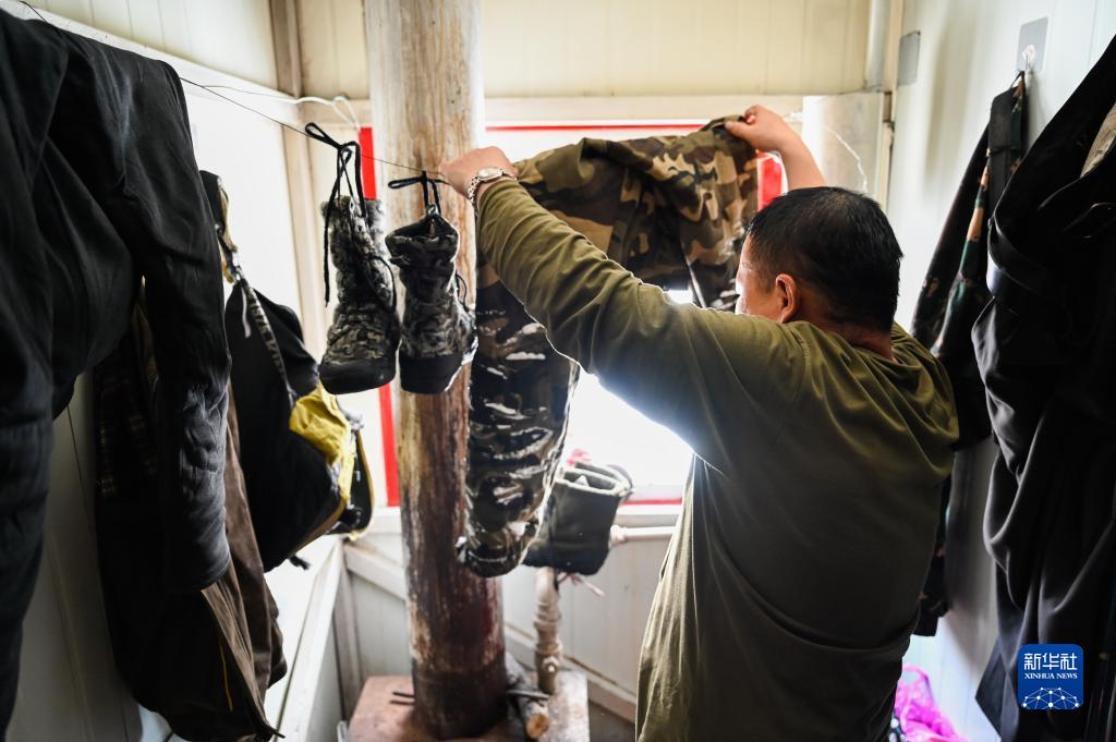 2月22日,烏龍岱林場(chǎng)402工隊職工在駐點(diǎn)的移動(dòng)板房?jì)群婵疽挛铩?/p>