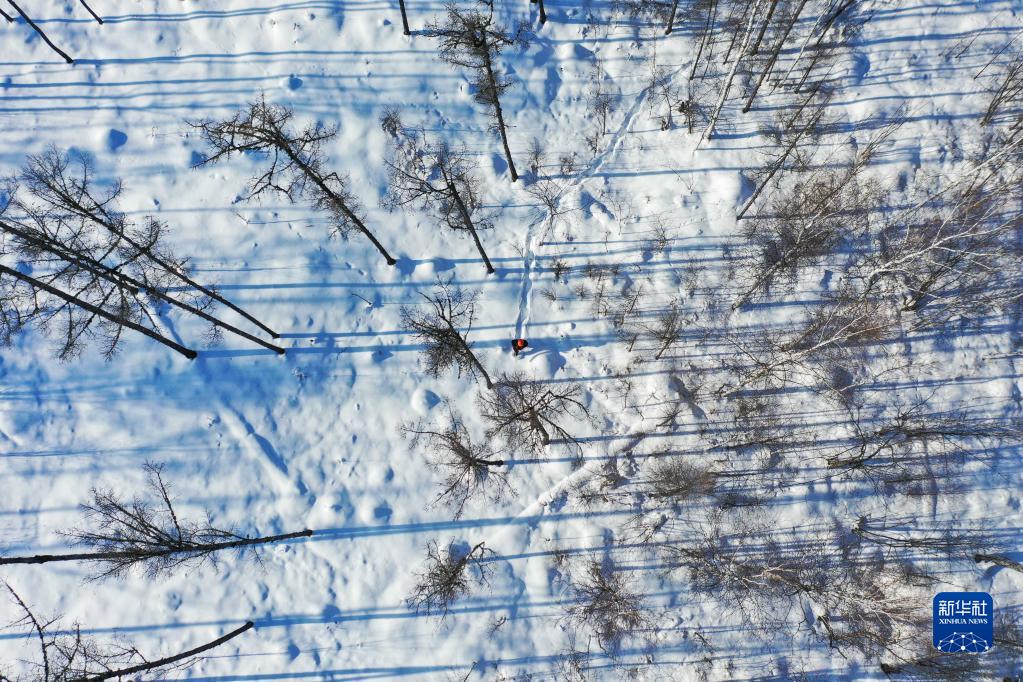 2月23日,烏龍岱林場(chǎng)職工在林區進(jìn)行綜合撫育工作(無(wú)人機照片)。
