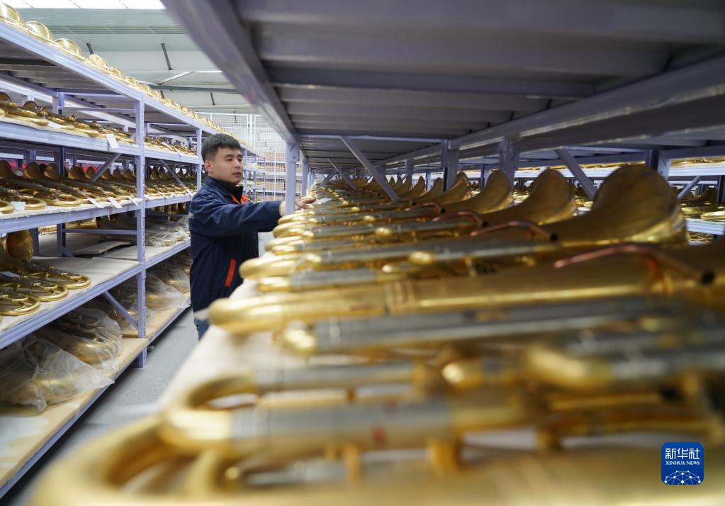 河北省武強縣一家西洋樂(lè )器生產(chǎn)企業(yè)的員工在清點(diǎn)樂(lè )器半成品數量(2月23日攝)。