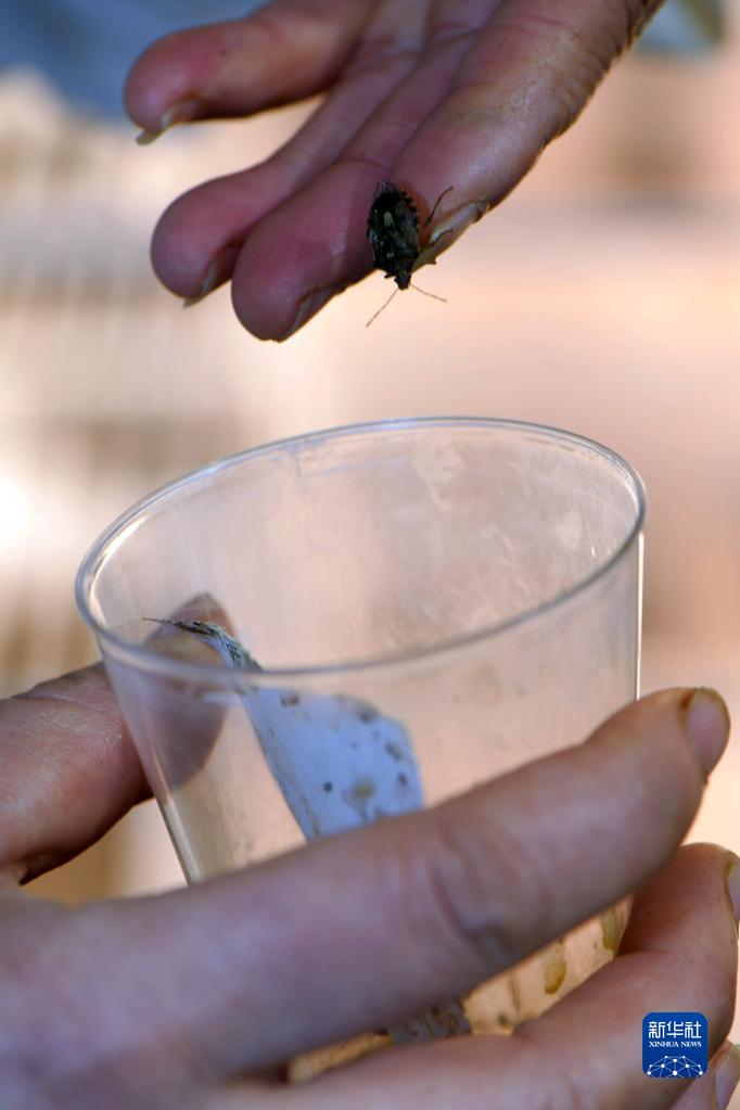 2月26日,貴州省鳳岡縣天敵昆蟲(chóng)繁育中心工作人員把雄性躅蝽放入裝有雌性躅蝽的容器里,讓其配對,然后放入恒溫箱繁殖。