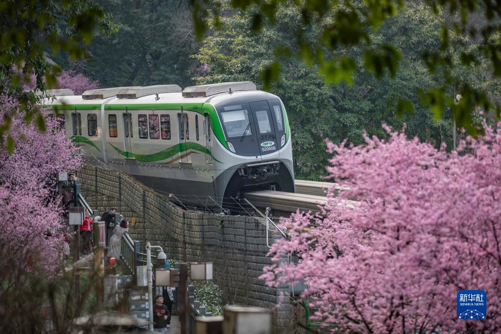 這是2月27日拍攝的運營(yíng)中的重慶軌道交通2號線(xiàn)列車(chē)。