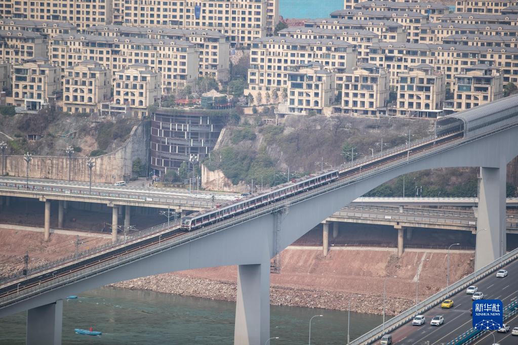 這是2月27日拍攝的運營(yíng)中的重慶軌道交通9號線(xiàn)列車(chē)。