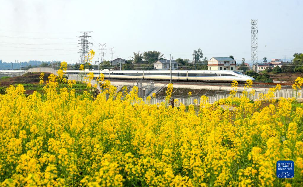 2月27日,動(dòng)車(chē)組列車(chē)行駛在四川省瀘州市龍馬潭區境內。