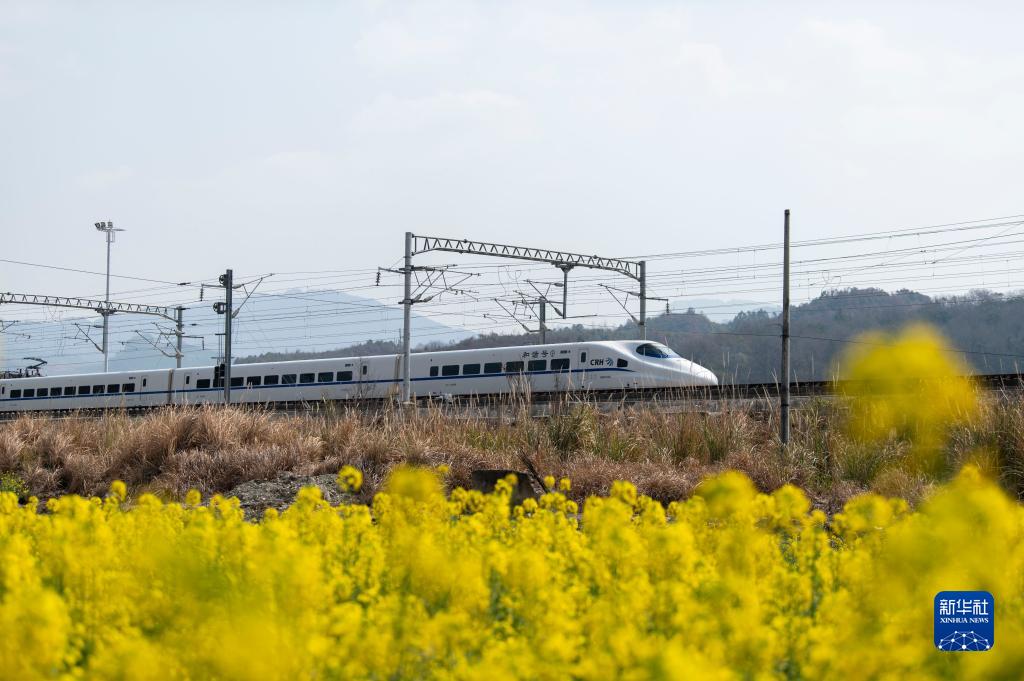 2月26日,動(dòng)車(chē)組列車(chē)在貴廣高鐵貴州從江段行駛。