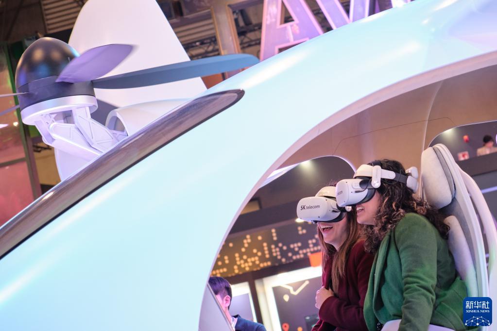 2月27日,參觀(guān)者在西班牙巴塞羅那舉行的世界移動(dòng)通信大會(huì )上體驗虛擬現實(shí)眼鏡。