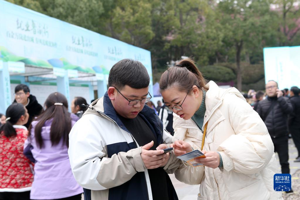 2月27日,在重慶市黔江區武陵文化廣場(chǎng),求職人員了解招聘信息。