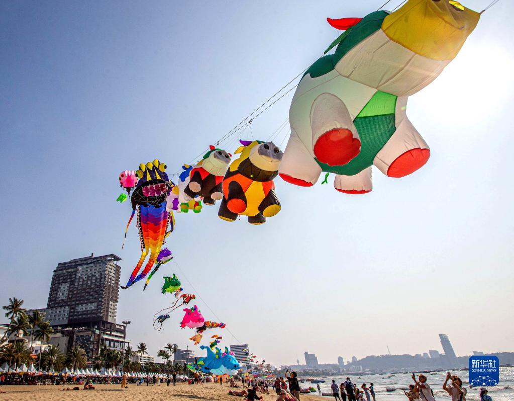 這是2月27日在泰國芭提雅海灘拍攝的大型風(fēng)箏。泰國芭提雅近日舉辦海灘風(fēng)箏節。
