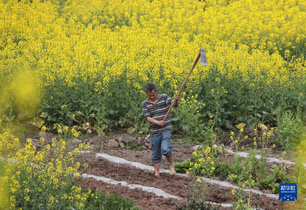 2月27日,貴州省赤水市文華街道建設社區的農民在地里勞作。