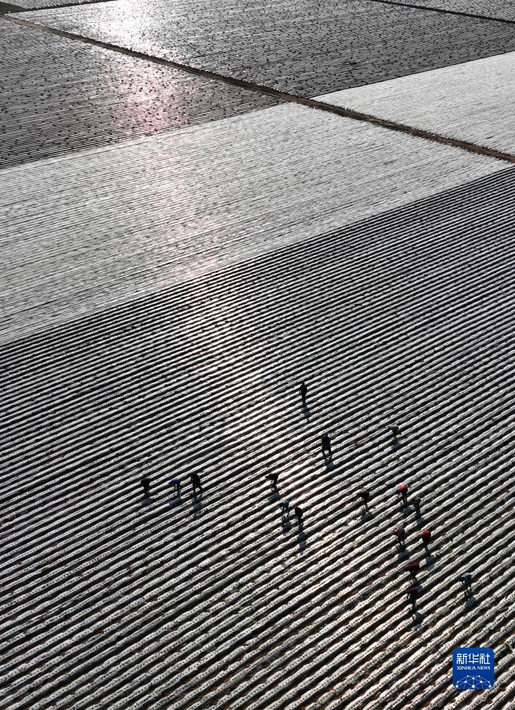 2月27日,山東省臨沂市郯城縣郯城街道農民在一處蔬菜種植基地勞作(無(wú)人機照片)。
