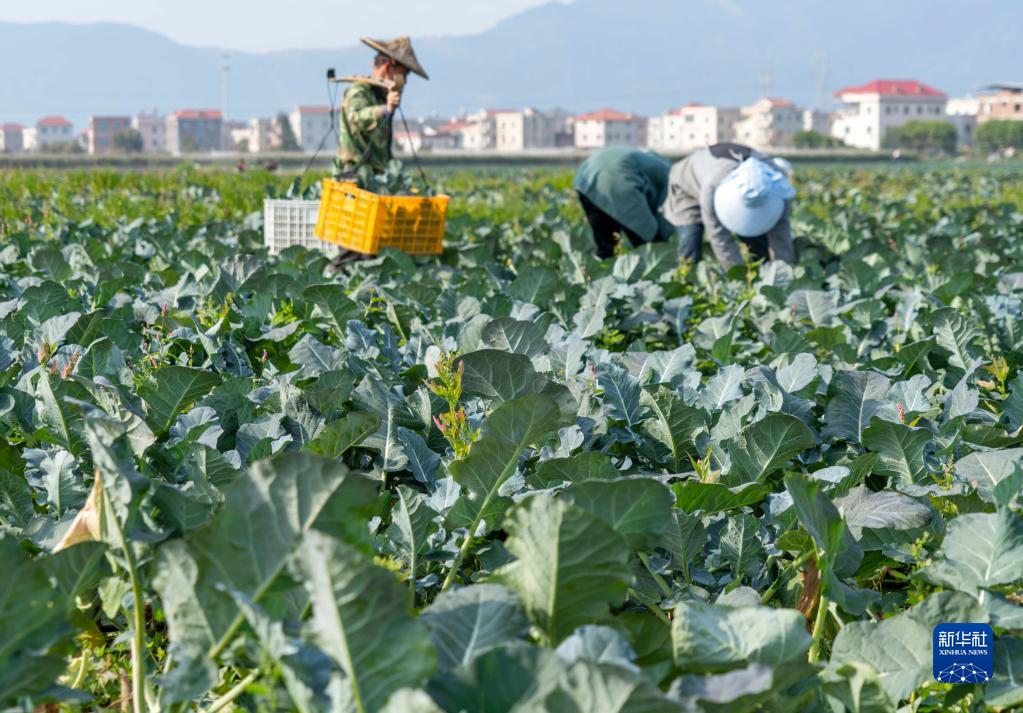 2月28日,在福建省漳州市龍海區東園鎮港邊村,農民在采收蔬菜。