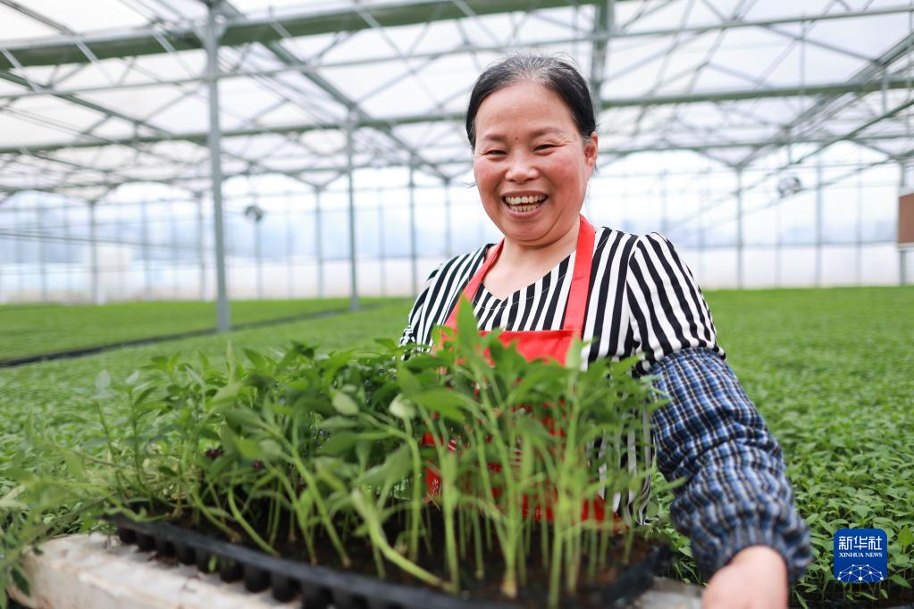 在貴州省榕江縣車(chē)江壩區智慧育苗中心內,當地農民運用水稻缽體育秧機、水肥一體自動(dòng)噴淋機、多功能育苗大棚等機械化、智能化設備進(jìn)行育秧育苗生產(chǎn),有效提高了勞動(dòng)效率和種苗質(zhì)量,助力春耕生產(chǎn)。