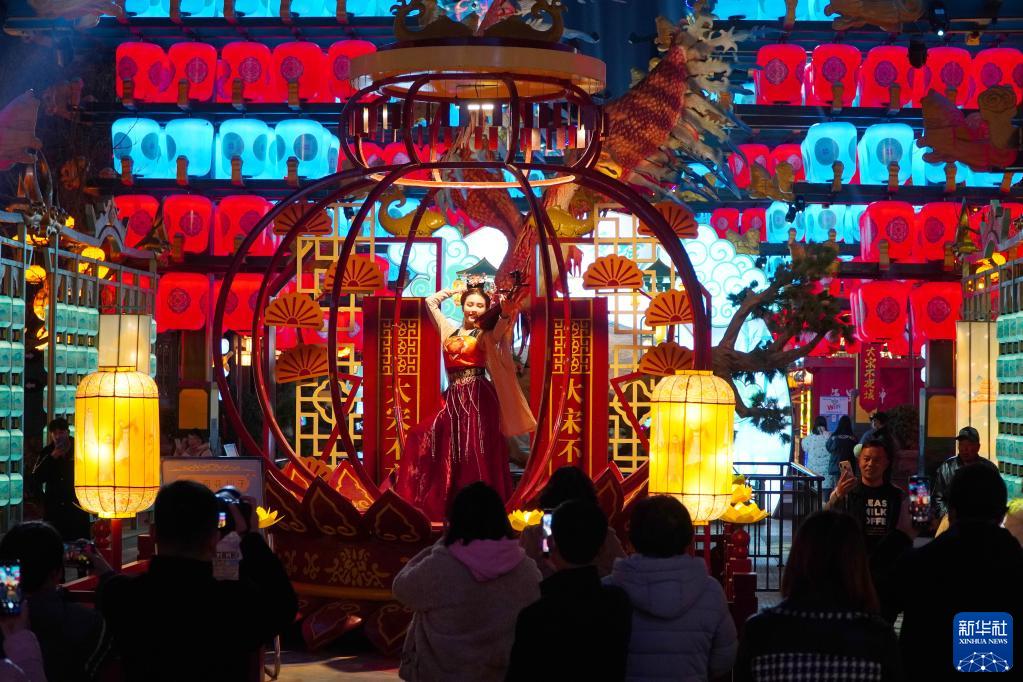 2月27日晚,游客在位于山東省東平縣的大宋不夜城觀(guān)看表演。