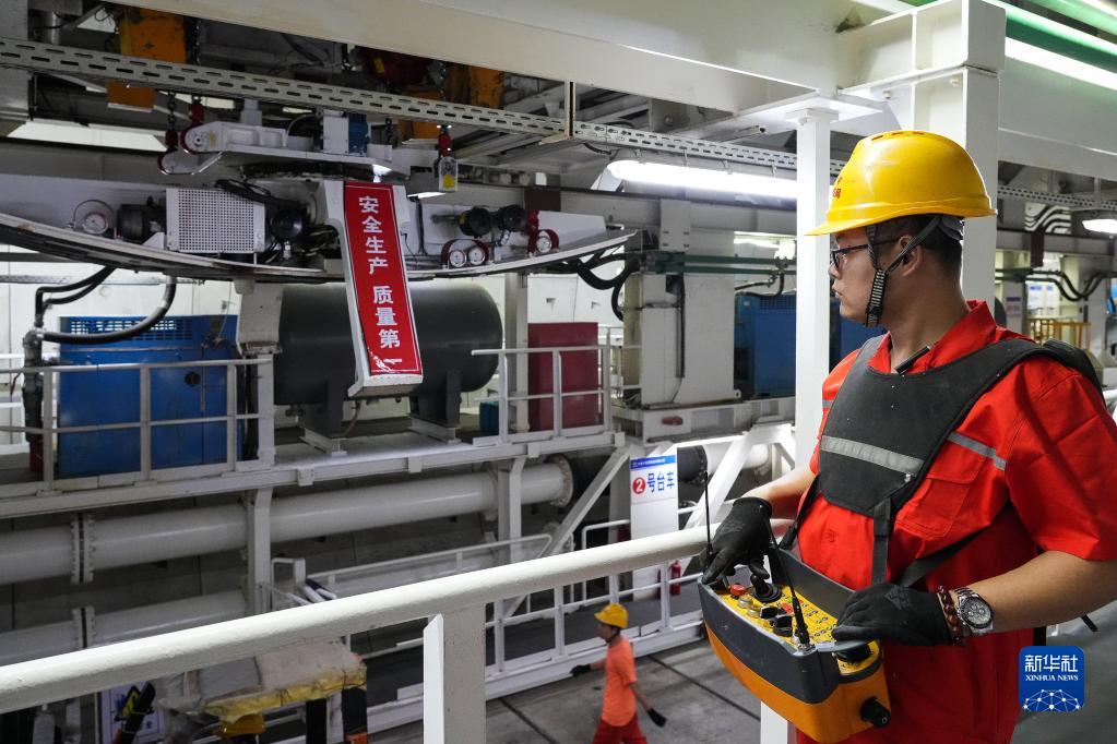 2月28日,施工人員在廣湛鐵路湛江灣海底隧道盾構區間操作吊機。