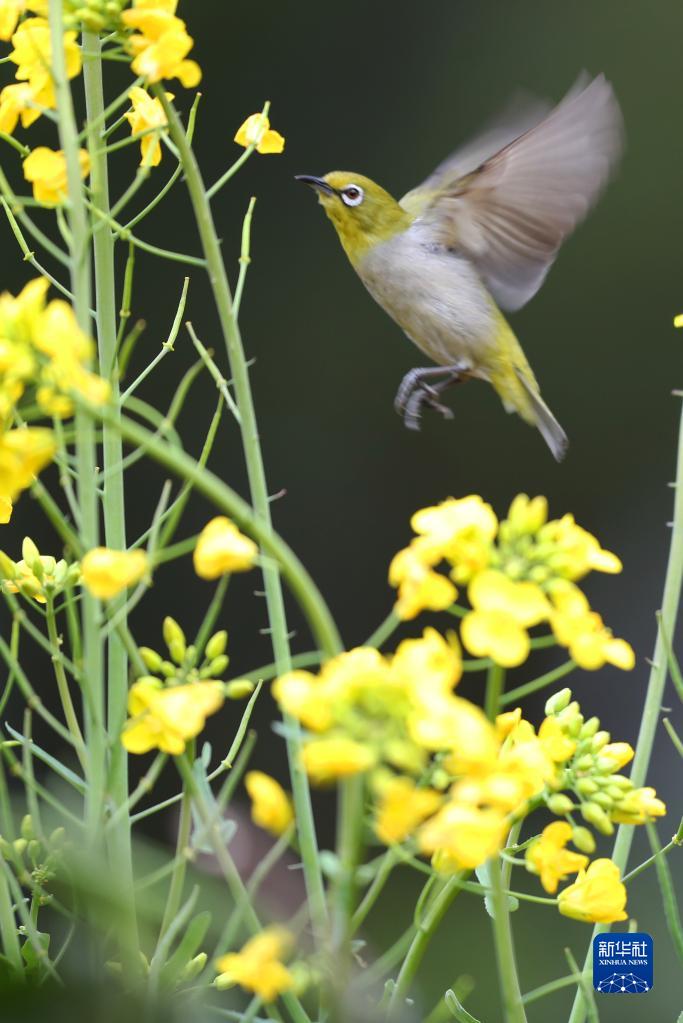 在湖南省衡陽(yáng)市雁峰區岳屏鎮油菜花海里拍攝的小鳥(niǎo)(2月28日攝)。