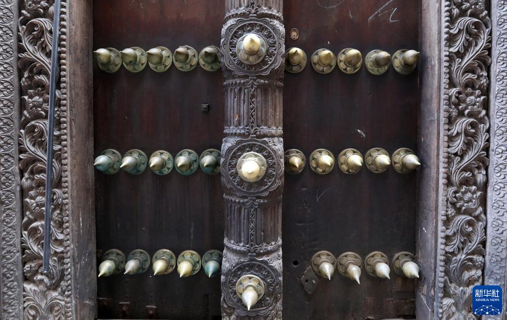 這是2月23日在石頭城拍攝的桑給巴爾蘇丹國最高統治者住宅的大門(mén)。