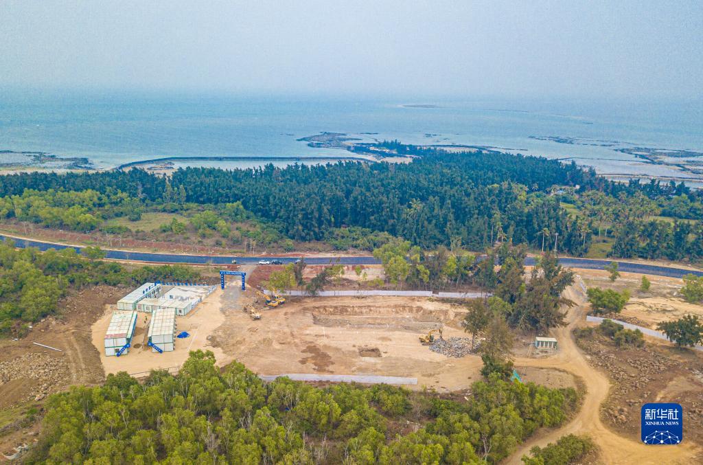在海南省儋州市拍攝的建設中的“火山海岸”驛站和環(huán)島旅游公路(無(wú)人機照片,2月24日攝)。