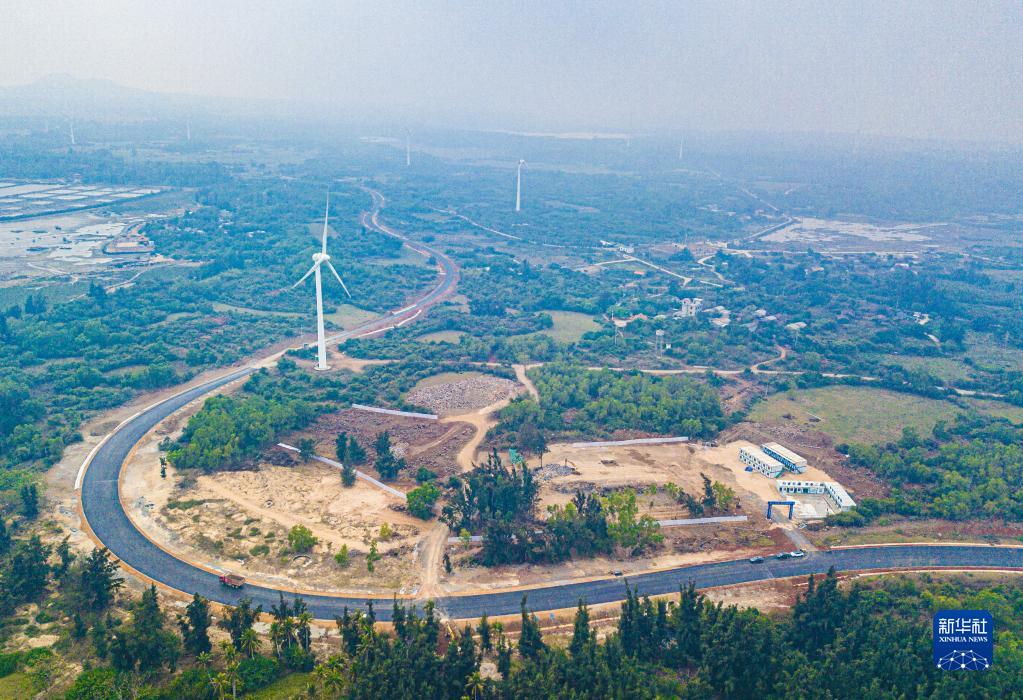 在海南省儋州市拍攝的建設中的“火山海岸”驛站和環(huán)島旅游公路(無(wú)人機照片,2月24日攝)。