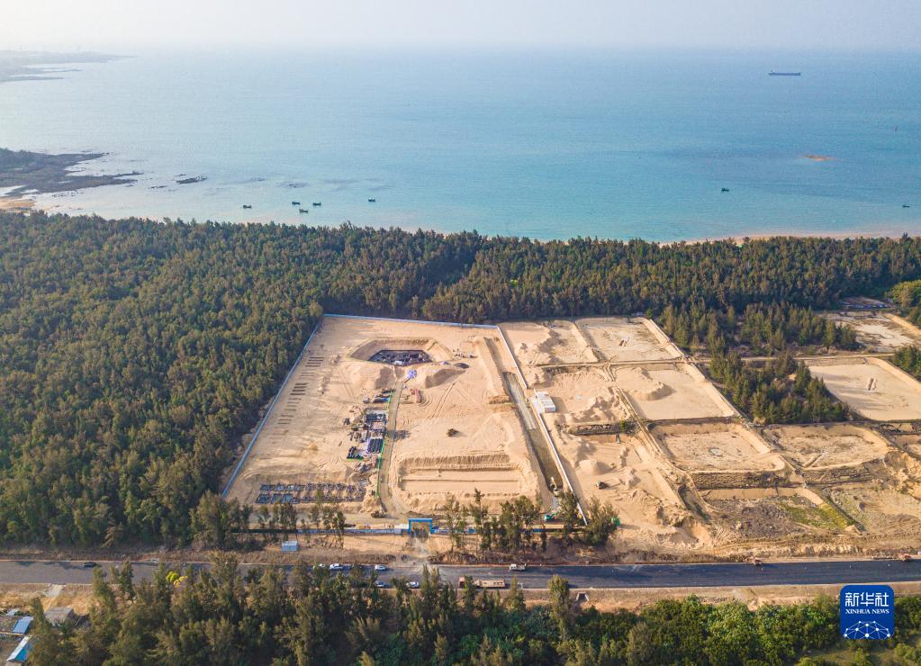 2月27日在海南省儋州市拍攝的建設中的“夕照儋耳”驛站和環(huán)島旅游公路(無(wú)人機照片)。