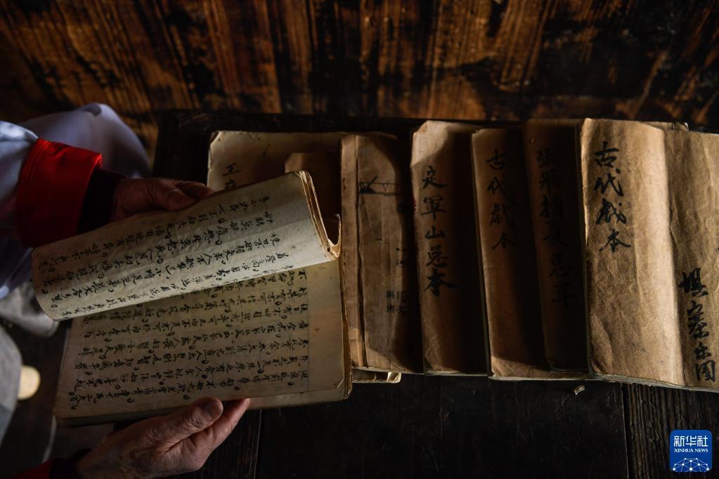 這是2月26日在貴州省天柱縣鳳城街道拍攝的侗戲古戲本。