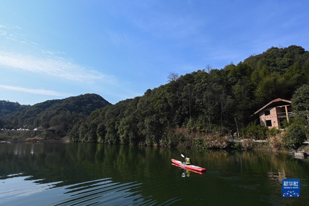 2月28日,在杭州市臨安區玲瓏街道前山村51Camp營(yíng)地,負責人丹裕在劃槳板。