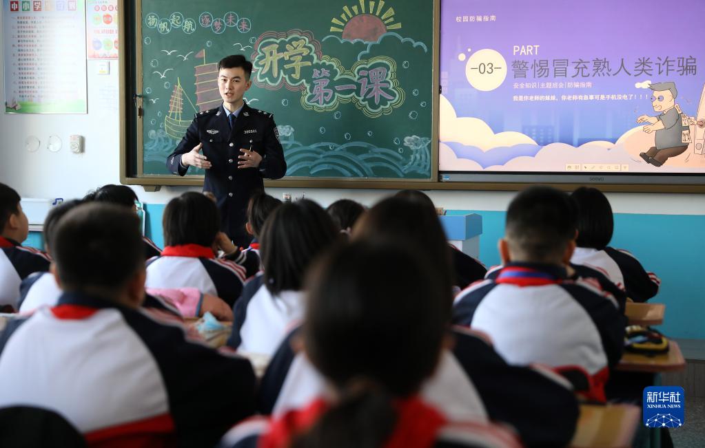 3月1日,一名鞍山市臺安縣公安局民警來(lái)到臺安縣實(shí)驗學(xué)校為學(xué)生講授安全教育課。