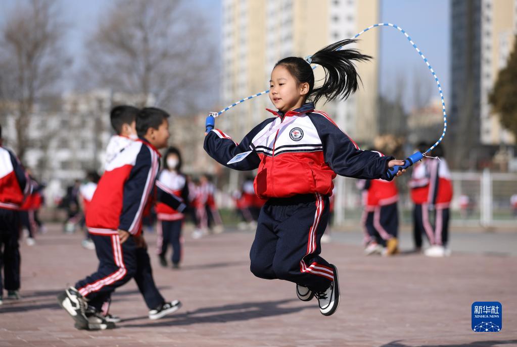 3月1日,鞍山市臺安縣實(shí)驗學(xué)校的學(xué)生在進(jìn)行課間運動(dòng)。