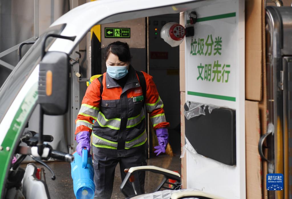 2月17日,劉明群給垃圾清潔站內正在傾倒垃圾的車(chē)輛消毒。