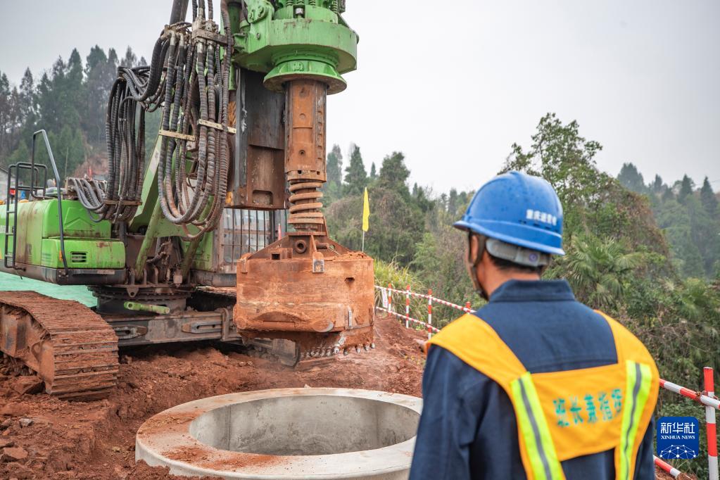 3月1日,在重慶市潼南區小渡鎮川渝1000千伏特高壓交流工程(重慶段)施工現場(chǎng),工作人員操作旋挖機進(jìn)行作業(yè)。
