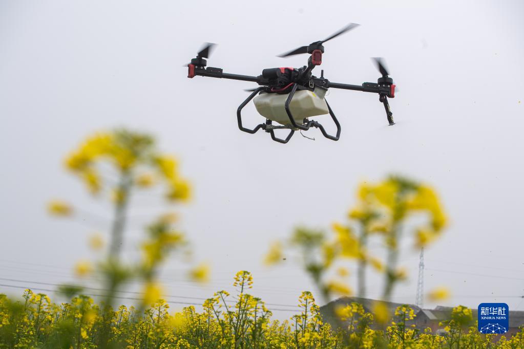 3月1日,在湖北省天門(mén)市黃潭鎮一處油菜田,植保無(wú)人機正在進(jìn)行噴藥作業(yè)。