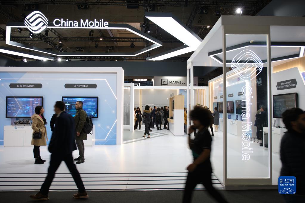 這是3月1日在西班牙巴塞羅那拍攝的世界移動(dòng)通信大會(huì )上的中國移動(dòng)展臺。