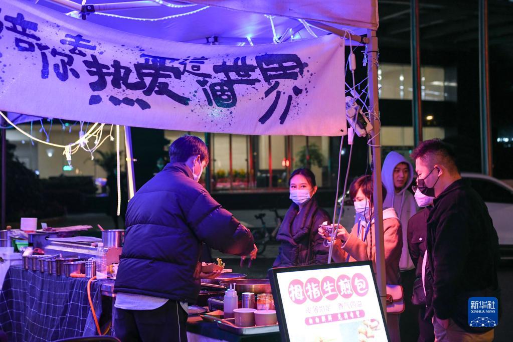 在四川省成都市錦江區三色路夜市,市民在購買(mǎi)小吃(2月28日攝)。