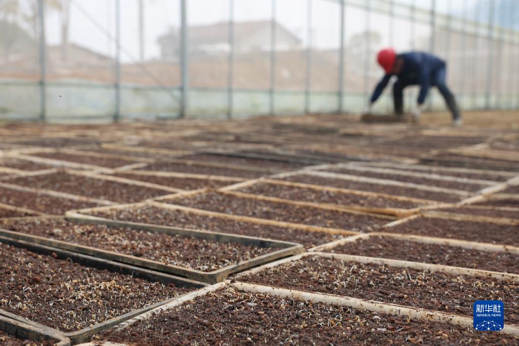 3月2日,農民在智能溫控大棚中擺放秧盤(pán)。