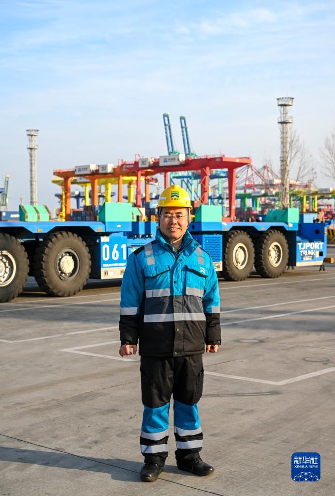 這是2月6日在天津港全物聯(lián)網(wǎng)集裝箱碼頭拍攝的全國人大代表成衛東。