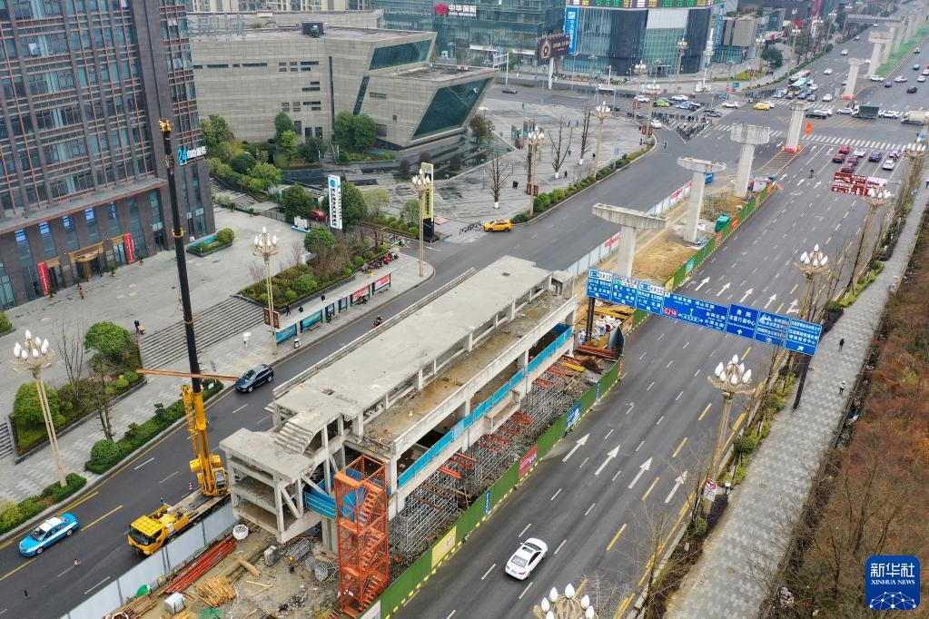 這是T2線(xiàn)金朱東路站(3月3日攝,無(wú)人機照片)。