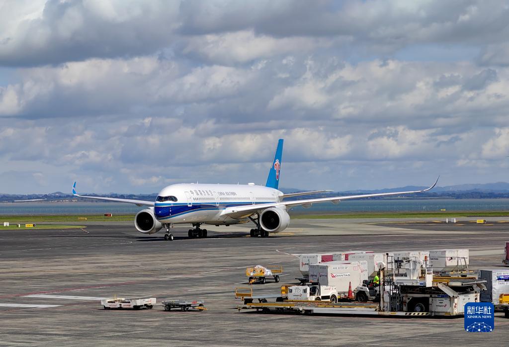 3月3日,搭載中國團隊游客的中國南方航空公司班機抵達新西蘭奧克蘭國際機場(chǎng)。